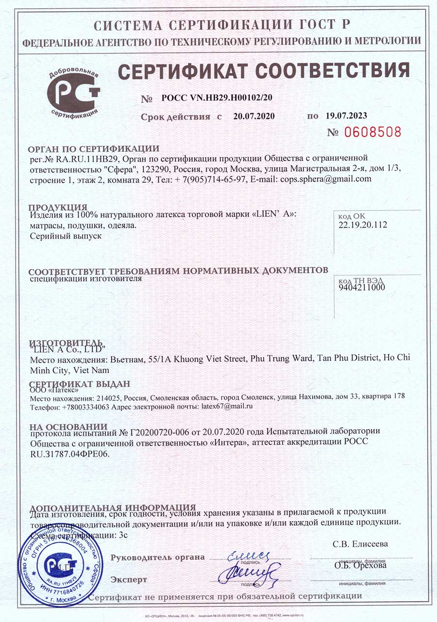 Гарантийные сроки от 18 месяцев до 60 месяцев, с даты, которая указана в накладной, в зависимости от модели матраса